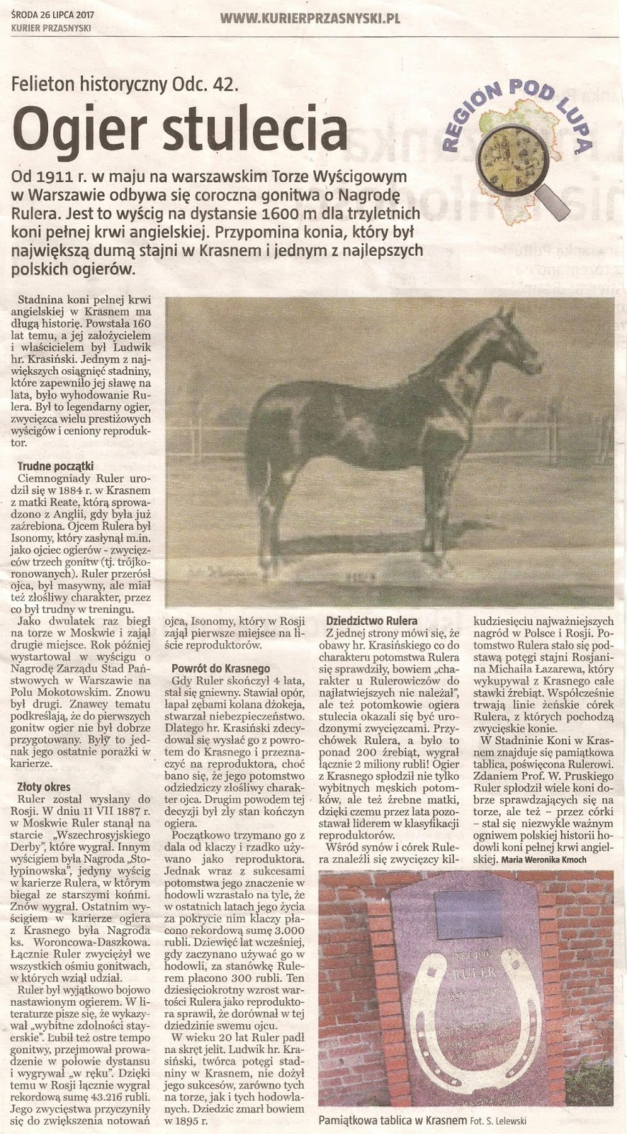 Obecnie terenem dworku w Szczukach zawiaduje stadnina koni w Krasnem (pow. przasnyski). Kiedy w dworze majątku dzierżawionego przez Żórawskich przebywała Maria Skłodowska-Curie, chlubą wspomnianej stadniny był ogier Ruler. Zapraszamy do lektury tekstu na jego temat.